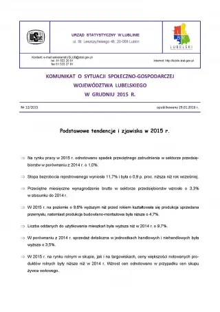 - Komunikat o sytuacji społeczno-gospodarczej województwa lubelskiego styczeń 2015 r.
