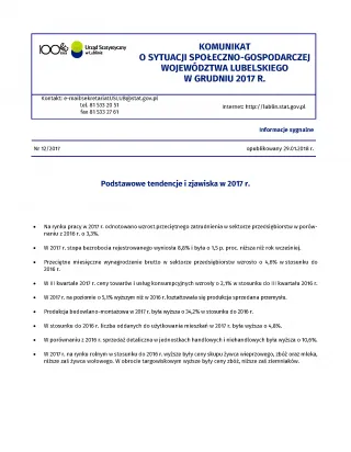 Komunikat o sytuacji społeczno-gospodarczej województwa lubelskiego grudzień 2017 r.
