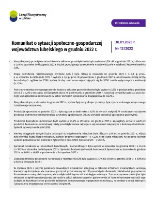 Komunikat o sytuacji społeczno-gospodarczej województwa lubelskiego grudzień 2022 r.