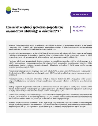 Komunikat o sytuacji społeczno-gospodarczej województwa lubelskiego kwiecień 2019 r.