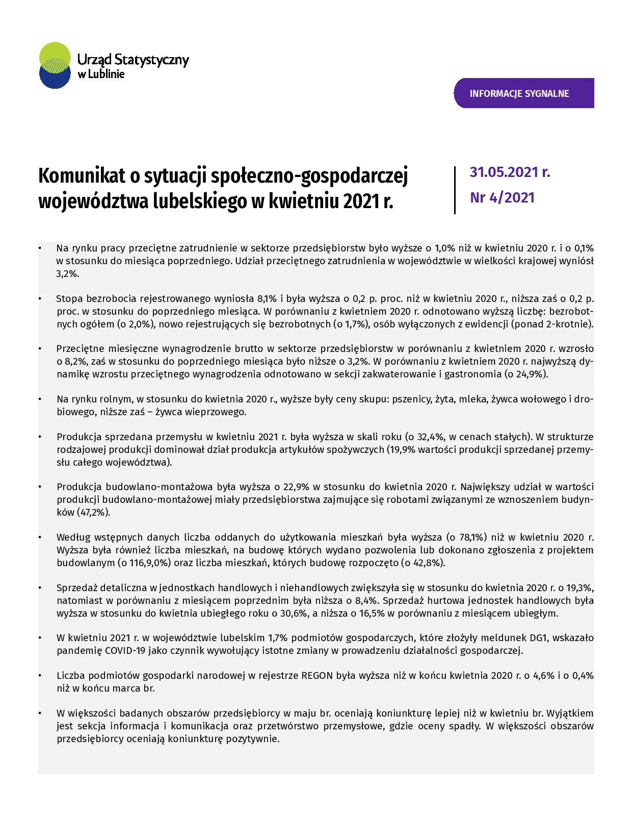 - Komunikat o sytuacji społeczno-gospodarczej województwa lubelskiego marzec 2021 r.