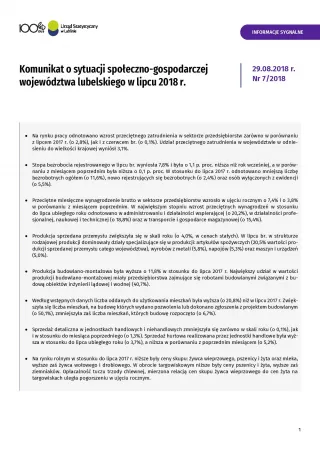 Komunikat o sytuacji społeczno-gospodarczej województwa lubelskiego lipiec 2018 r.