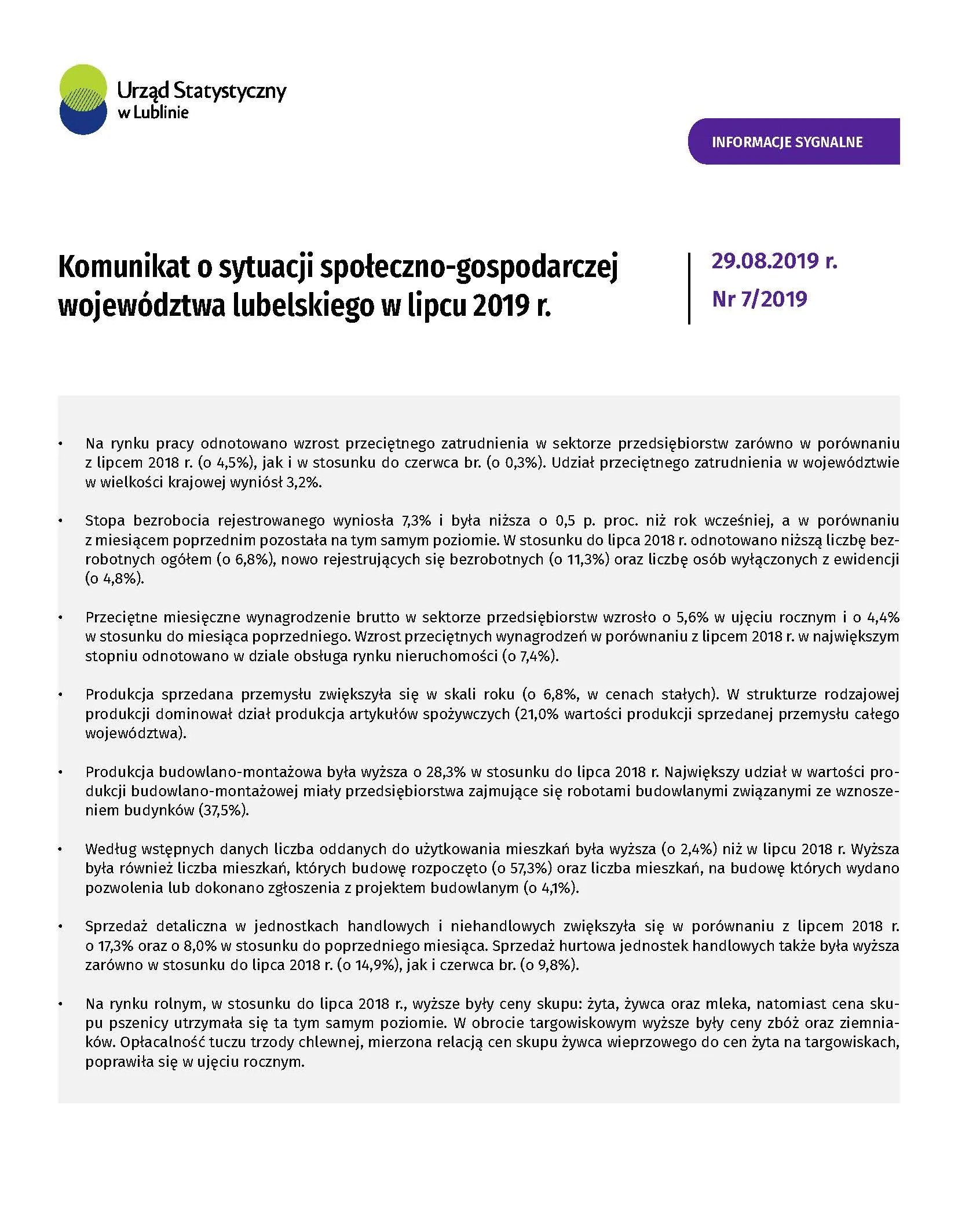 - Komunikat o sytuacji społeczno-gospodarczej województwa lubelskiego sierpień 2019 r.
