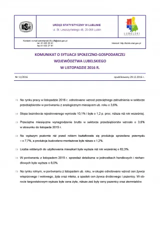 Komunikat o sytuacji społeczno-gospodarczej województwa lubelskiego listopad 2016 r.
