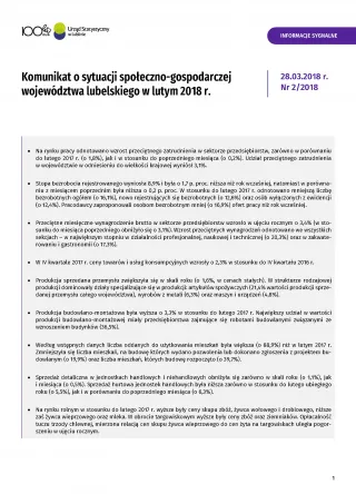 - Komunikat o sytuacji społeczno-gospodarczej województwa lubelskiego styczeń 2018 r.