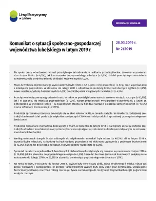 Komunikat o sytuacji społeczno-gospodarczej województwa lubelskiego luty 2019 r.
