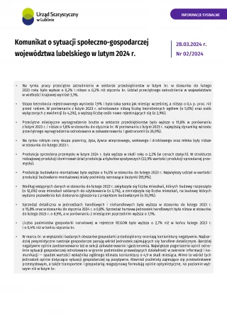 - Komunikat o sytuacji społeczno-gospodarczej województwa lubelskiego marzec 2024 r.