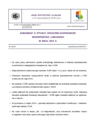 - Komunikat o sytuacji społeczno-gospodarczej województwa lubelskiego czerwiec 2015 r.