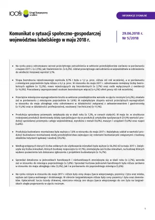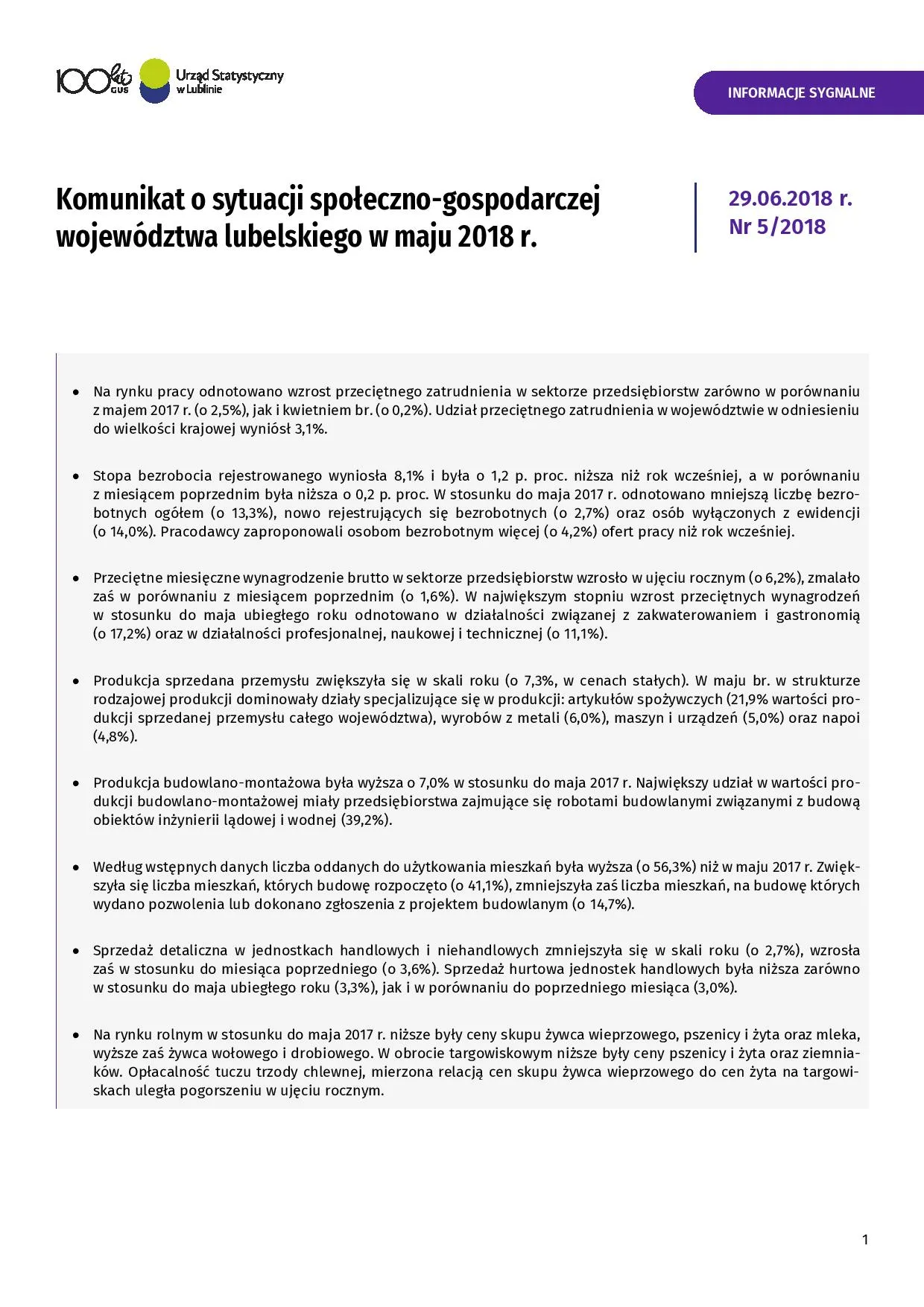 Komunikat o sytuacji społeczno-gospodarczej województwa lubelskiego maj 2018 r.