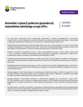 Komunikat o sytuacji społeczno-gospodarczej województwa lubelskiego maj 2019 r.