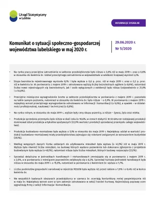 - Komunikat o sytuacji społeczno-gospodarczej województwa lubelskiego czerwiec 2020 r.