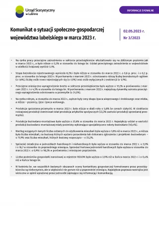 Komunikat o sytuacji społeczno-gospodarczej województwa lubelskiego marzec 2023 r.