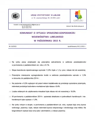 - Komunikat o sytuacji społeczno-gospodarczej województwa lubelskiego listopad 2015 r.