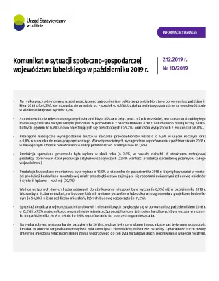 Komunikat o sytuacji społeczno-gospodarczej województwa lubelskiego październik 2019 r.