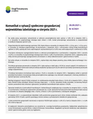 Komunikat o sytuacji społeczno-gospodarczej województwa lubelskiego sierpień 2021 r.