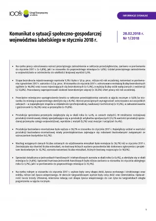 Komunikat o sytuacji społeczno-gospodarczej województwa lubelskiego styczeń 2018 r.
