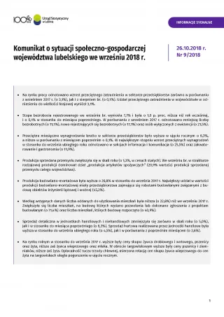 - Komunikat o sytuacji społeczno-gospodarczej województwa lubelskiego październik 2018 r.