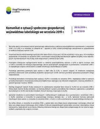 Komunikat o sytuacji społeczno-gospodarczej województwa lubelskiego wrzesień 2019 r.