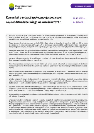 Komunikat o sytuacji społeczno-gospodarczej województwa lubelskiego wrzesień 2023 r.