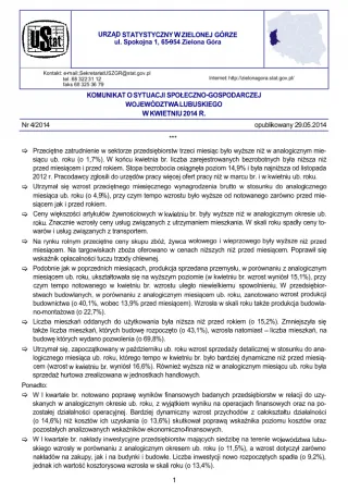 Komunikat o sytuacji społeczno-gospodarczej województwa lubuskiego w kwietniu 2014 r.