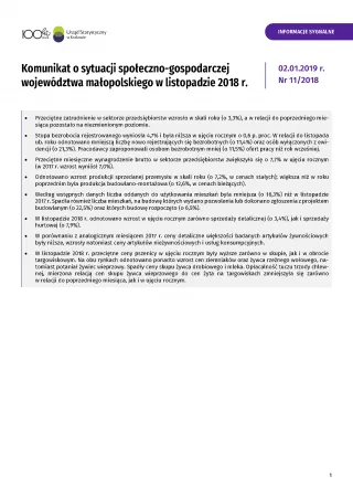 - Komunikat o sytuacji społeczno-gospodarczej województwa małopolskiego w październiku 2018 r.