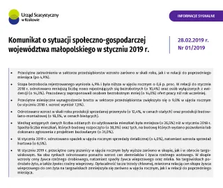 Komunikat o sytuacji społeczno-gospodarczej województwa małopolskiego w styczniu 2019 r.
