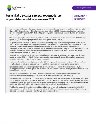 Komunikat o sytuacji społeczno-gospodarczej województwa opolskiego - marzec 2021
