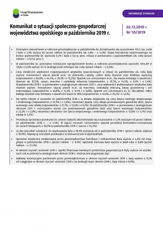 - Komunikat o sytuacji społeczno-gospodarczej województwa opolskiego - listopad 2019