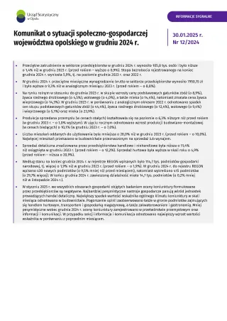 Komunikat o sytuacji społeczno-gospodarczej województwa opolskiego w grudniu 2024 r.