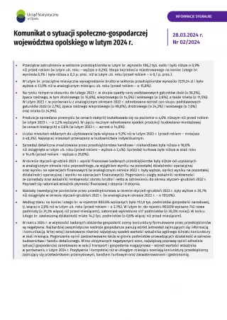 - Komunikat o sytuacji społeczno-gospodarczej województwa opolskiego w lutym 2025 r.