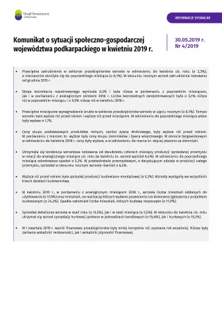 Komunikat o sytuacji społeczno-gospodarczej województwa podkarpackiego kwiecień 2019 r.