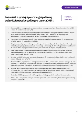 - Komunikat o sytuacji społeczno-gospodarczej województwa podkarpackiego w lipcu 2024 r.