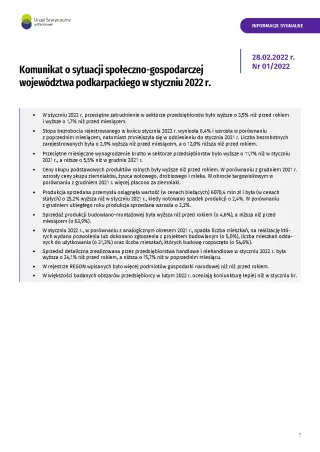 - Komunikat o sytuacji społeczno-gospodarczej województwa podkarpackiego w lutym 2022 r.