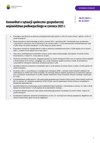 - Komunikat o sytuacji społeczno-gospodarczej województwa podkarpackiego w lipcu 2021 r.