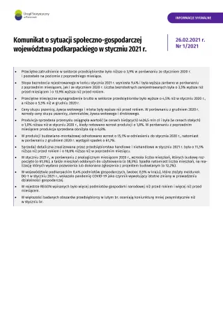 - Komunikat o sytuacji społeczno-gospodarczej województwa podkarpackiego w lutym 2021 r.