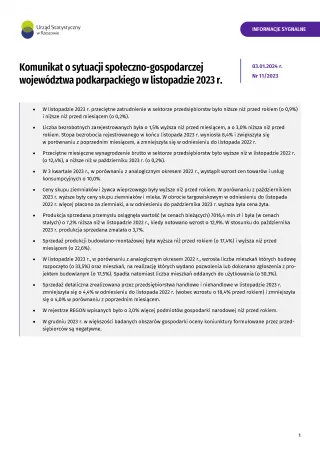 Komunikat o sytuacji społeczno-gospodarczej województwa podkarpackiego w listopadzie 2023 r.