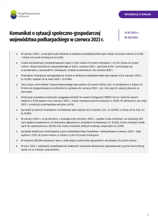 - Komunikat o sytuacji społeczno-gospodarczej województwa podkarpackiego w lipcu 2023 r.