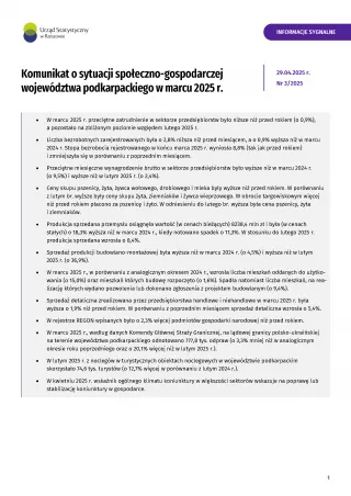 Komunikat o sytuacji społeczno-gospodarczej województwa podkarpackiego w marcu 2025 r.