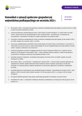 - Komunikat o sytuacji społeczno-gospodarczej województwa podkarpackiego w październiku 2022 r.