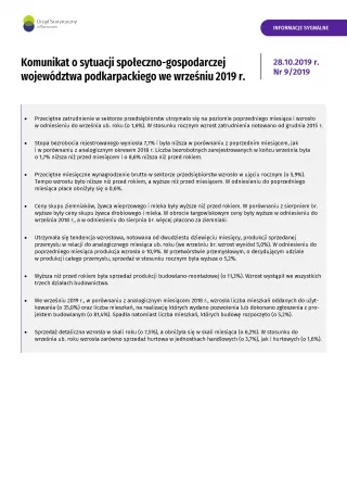 - Komunikat o sytuacji społeczno-gospodarczej województwa podkarpackiego październik 2019 r.