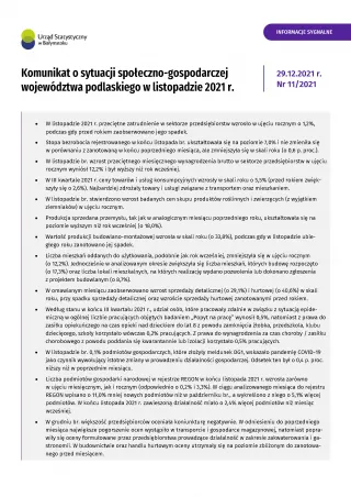 Komunikat o sytuacji społeczno-gospodarczej województwa podlaskiego w listopadzie 2021 r.