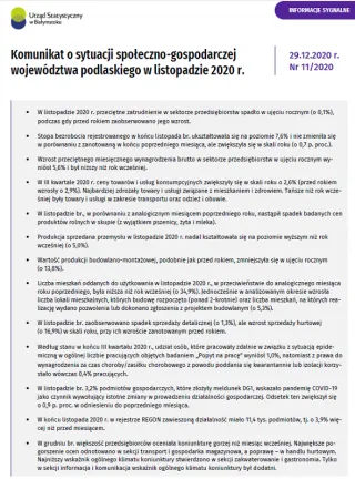 Komunikat o sytuacji społeczno-gospodarczej województwa podlaskiego w listopadzie 2020 r.