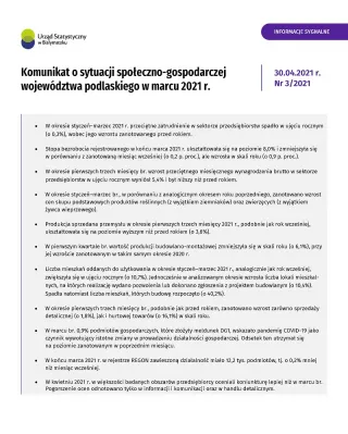 Komunikat o sytuacji społeczno-gospodarczej województwa podlaskiego w marcu 2021 r.