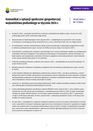 Komunikat o sytuacji społeczno-gospodarczej województwa podlaskiego w styczniu 2024 r.