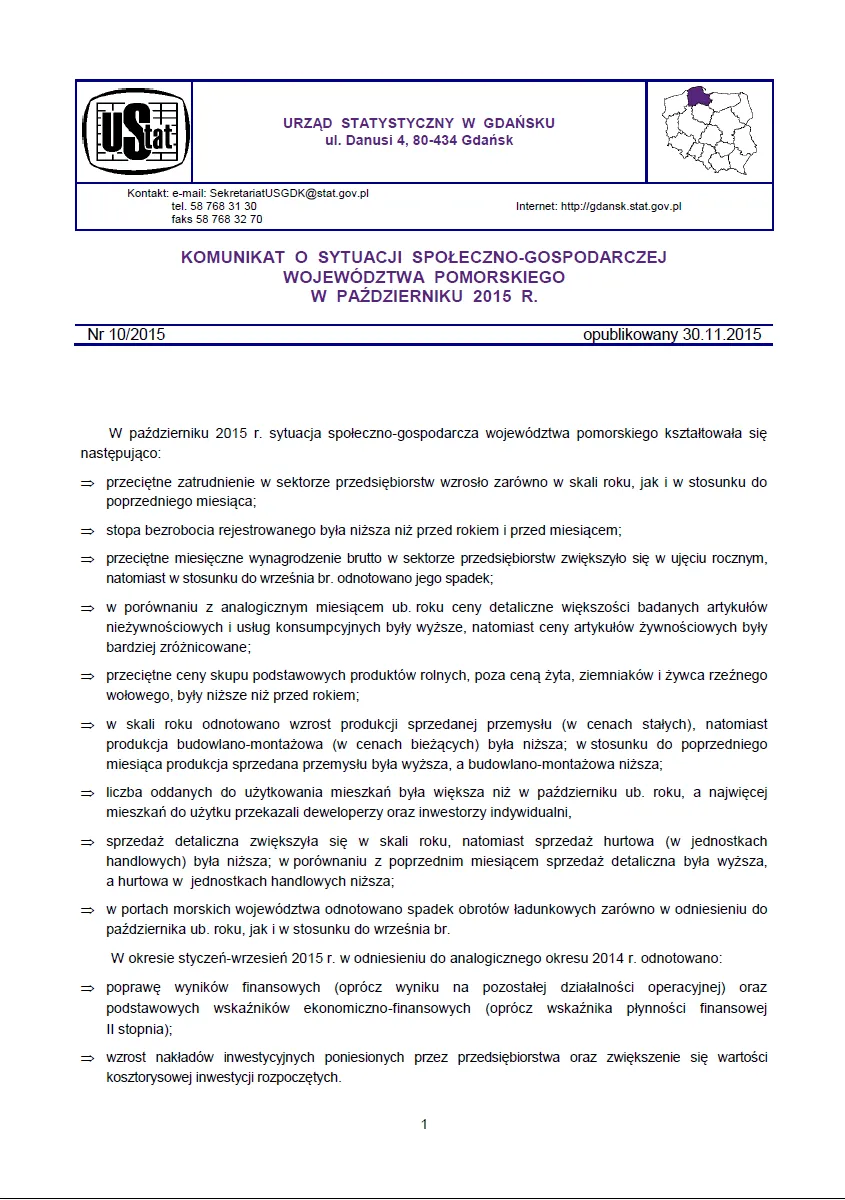 - Komunikat o sytuacji społeczno-gospodarczej województwa pomorskiego w listopadzie 2015 r.