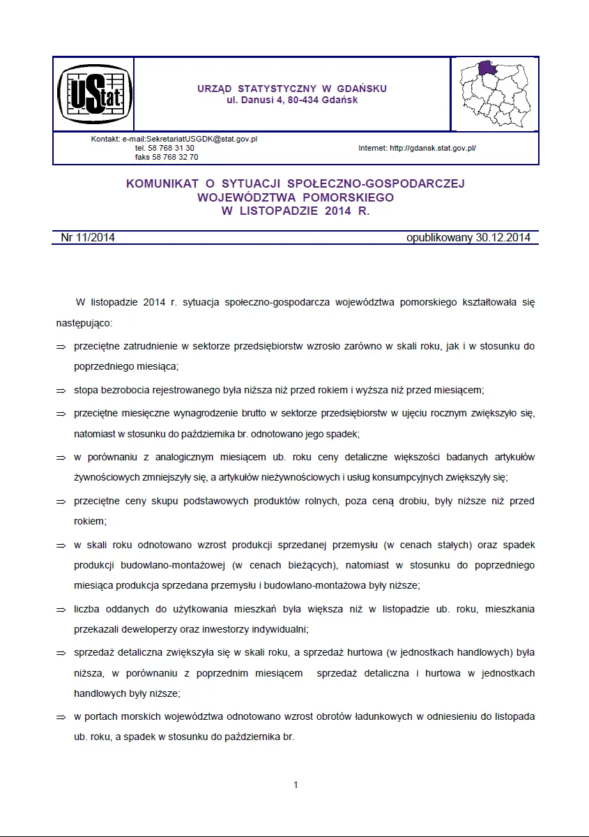 - Komunikat o sytuacji społeczno-gospodarczej województwa pomorskiego w grudniu 2014 r.