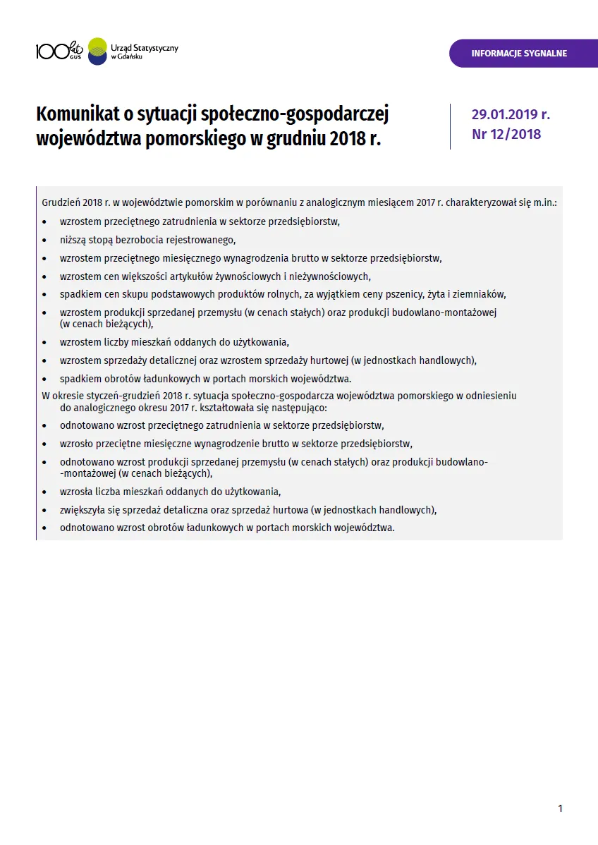 - Komunikat o sytuacji społeczno-gospodarczej województwa pomorskiego w styczniu 2019 r.