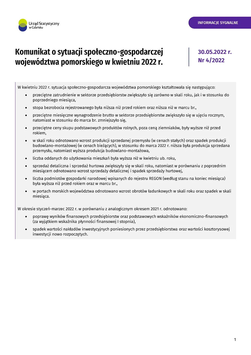 - Komunikat o sytuacji społeczno-gospodarczej województwa pomorskiego w marcu 2022 r.