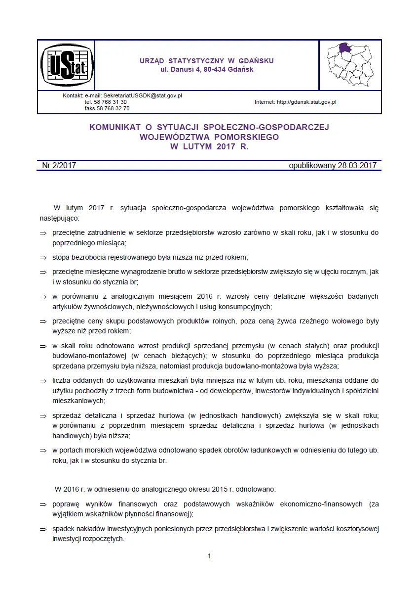 - Komunikat o sytuacji społeczno-gospodarczej województwa pomorskiego w marcu 2017 r.