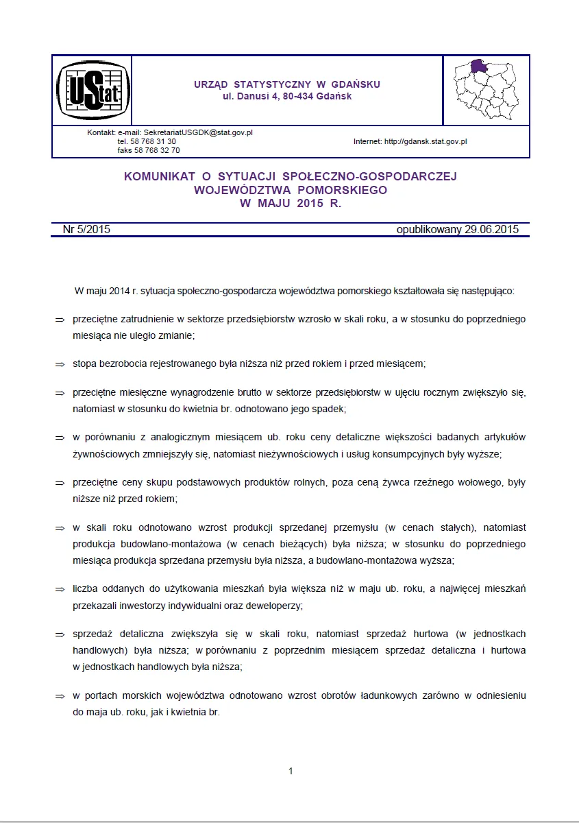 - Komunikat o sytuacji społeczno-gospodarczej województwa pomorskiego w marcu 2015 r.